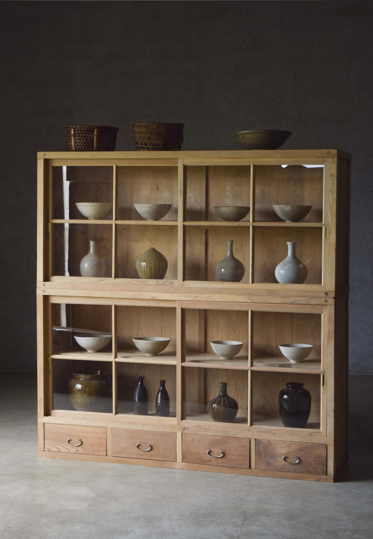 引出し4杯の二段式食器棚。