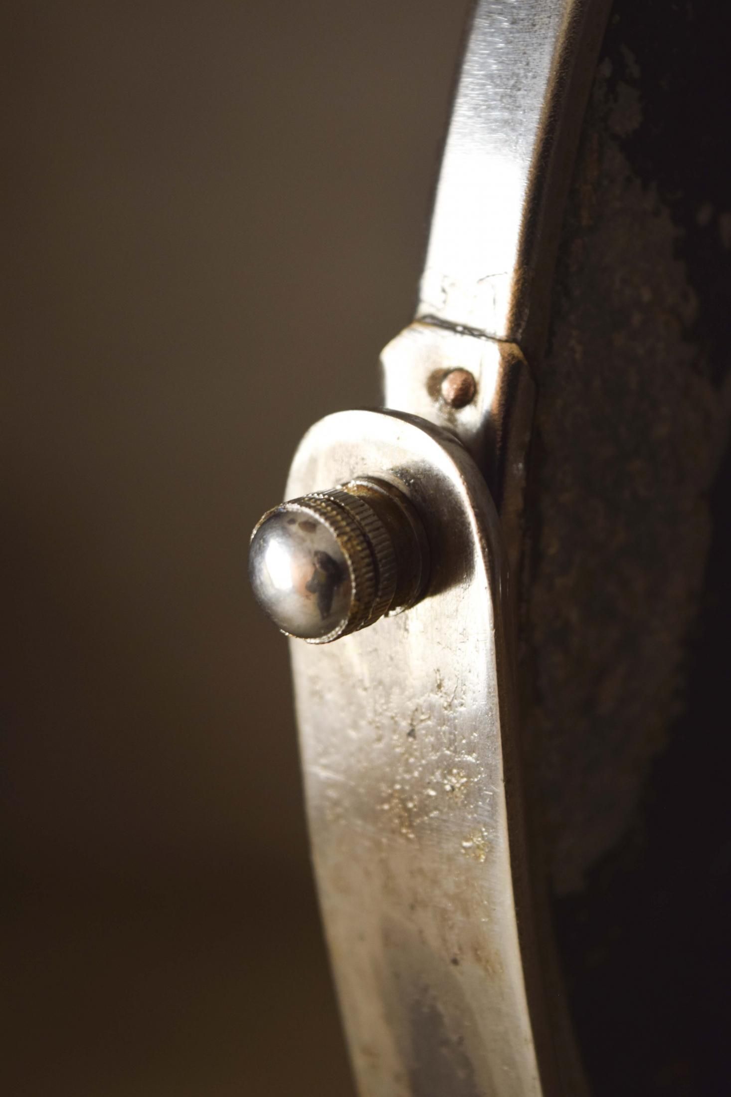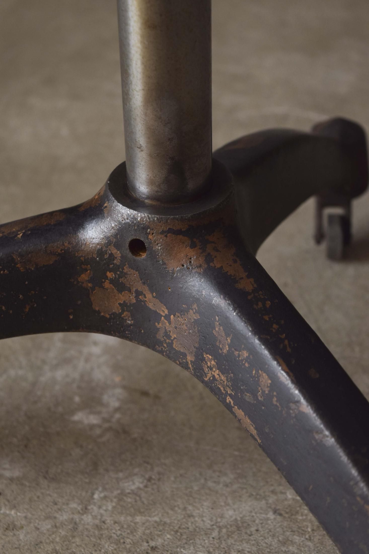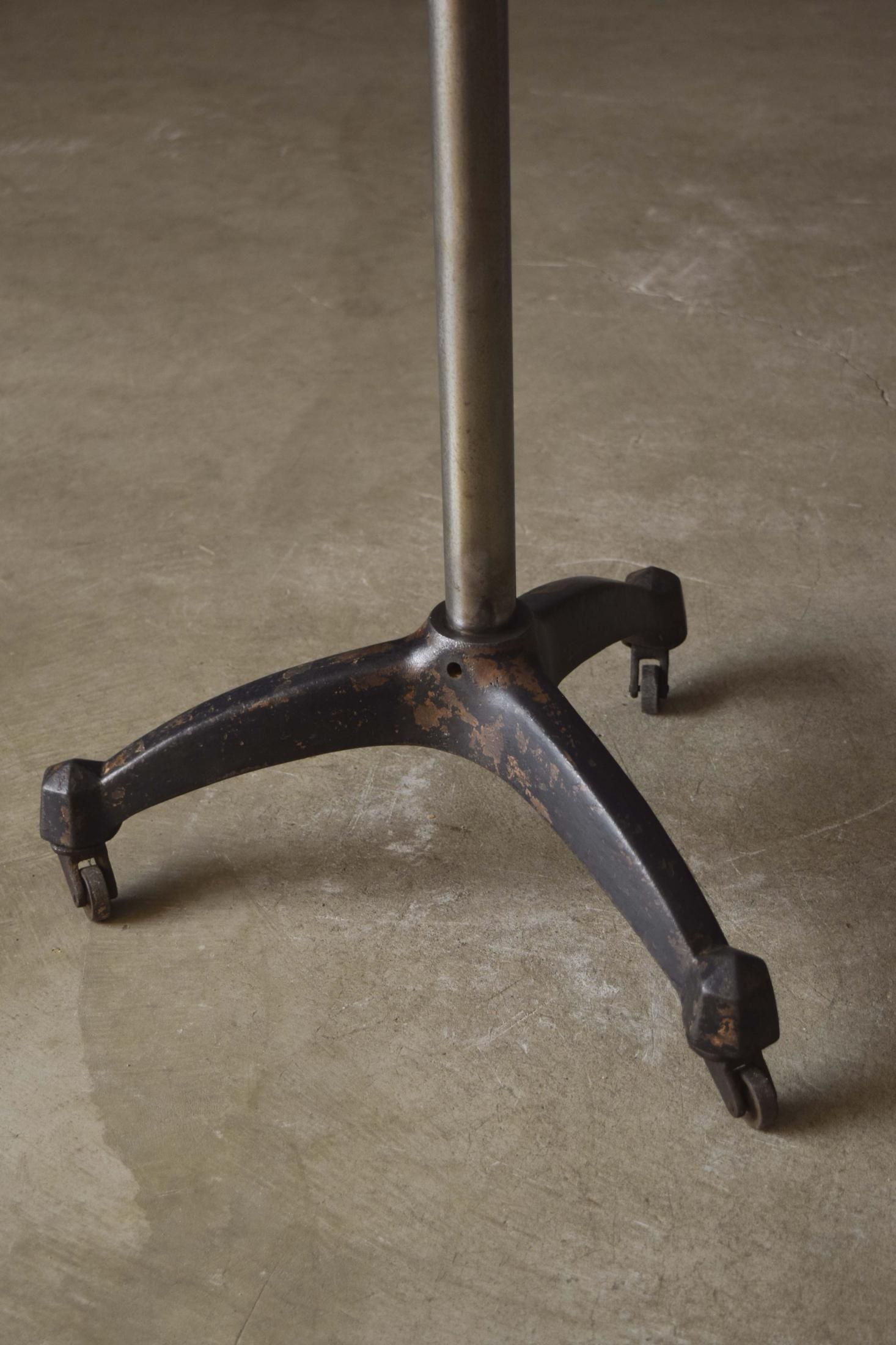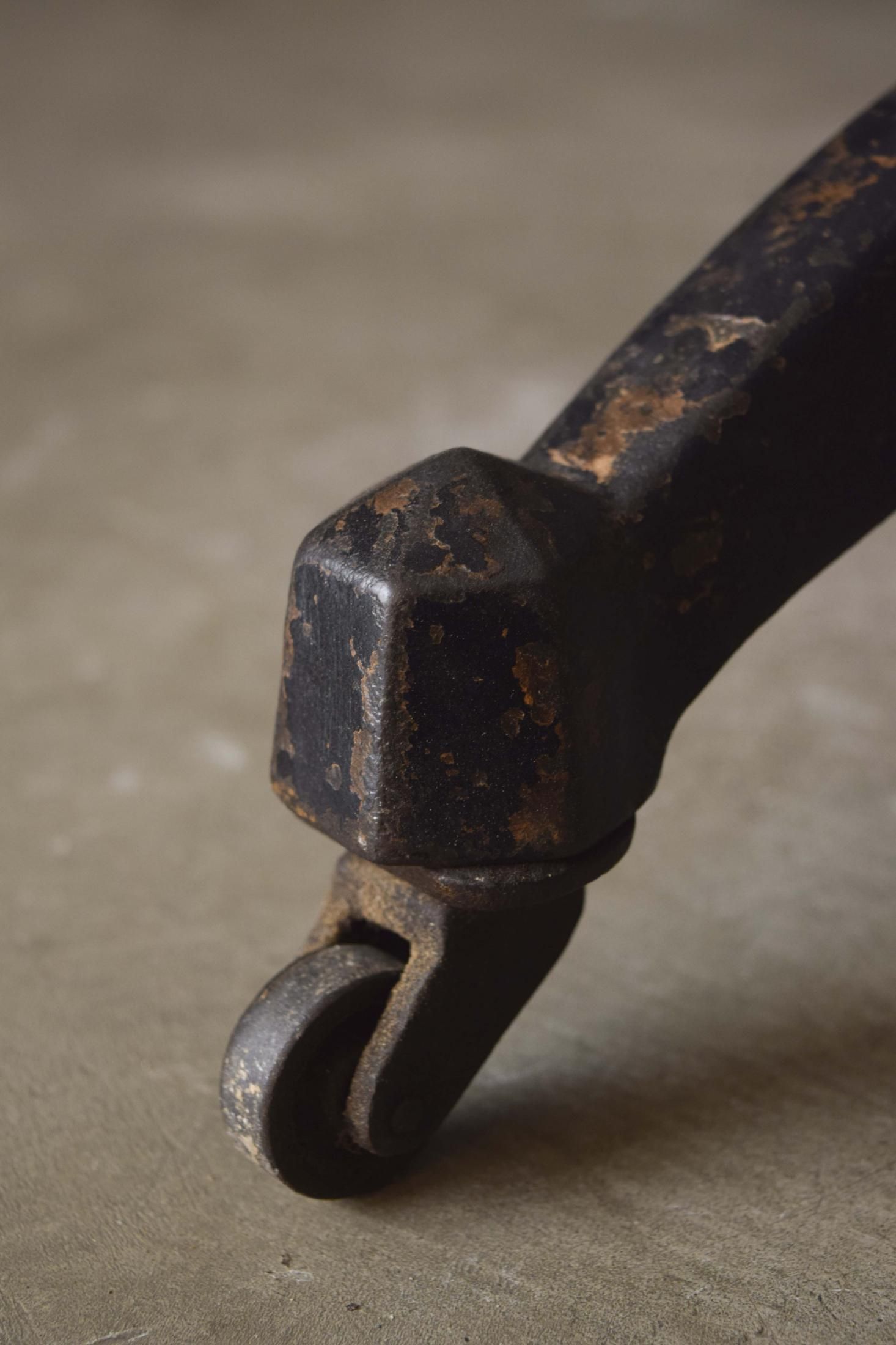 経年によって金属の錆や黒色塗装が剥がれ、味わい深くなっております。キャスターも可動するため、置く場所に困りません。
