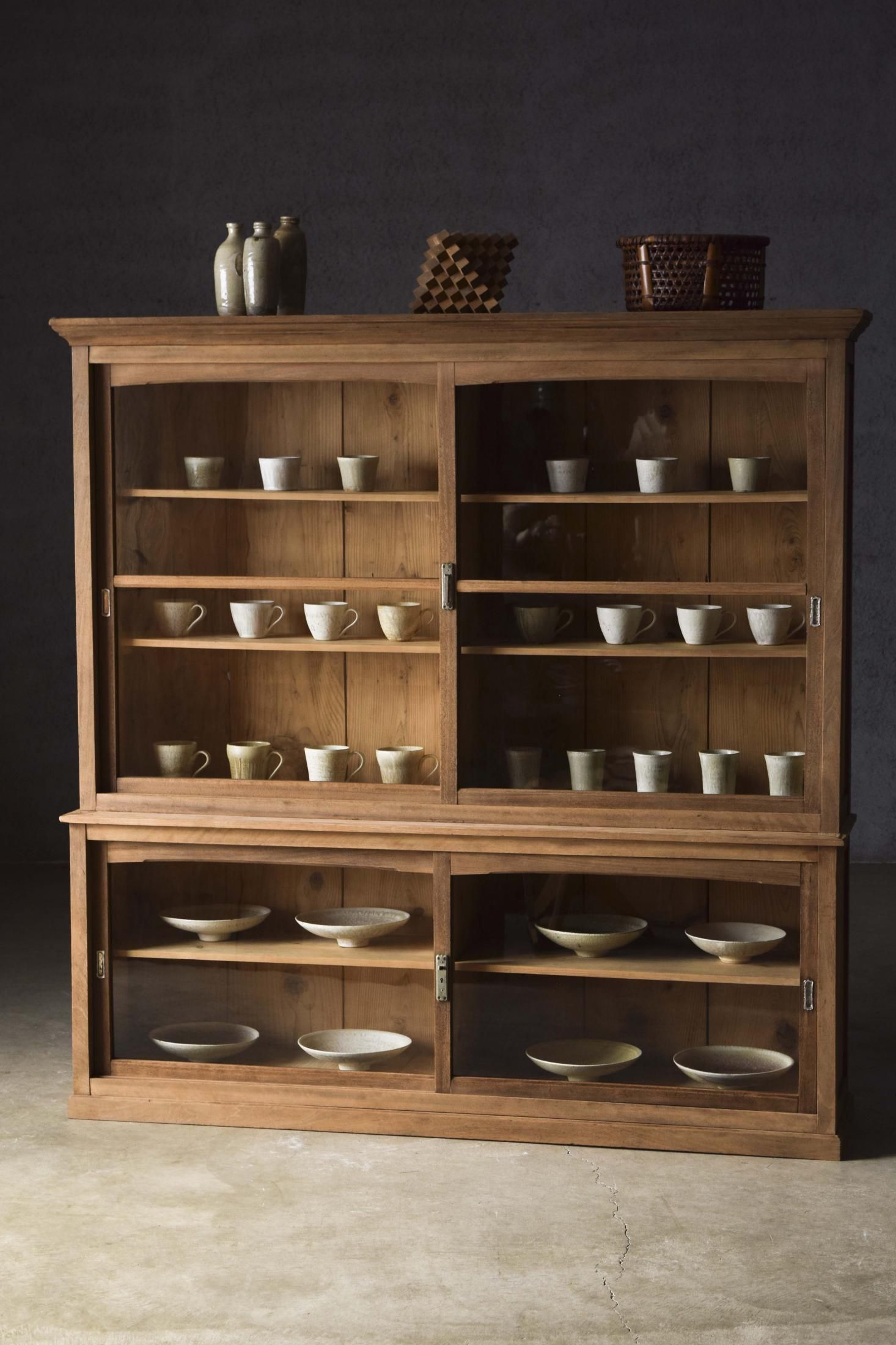 造りの美しい二段式食器棚。