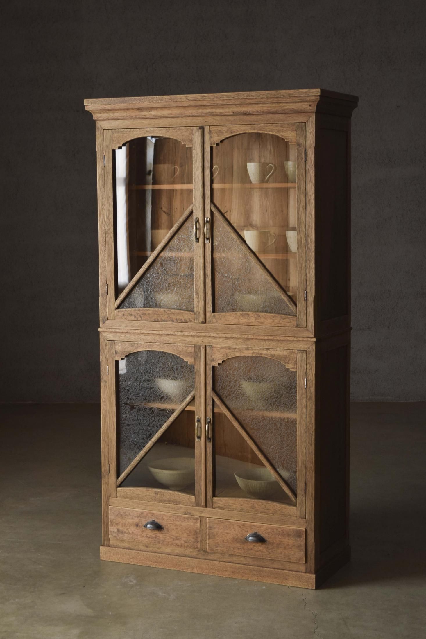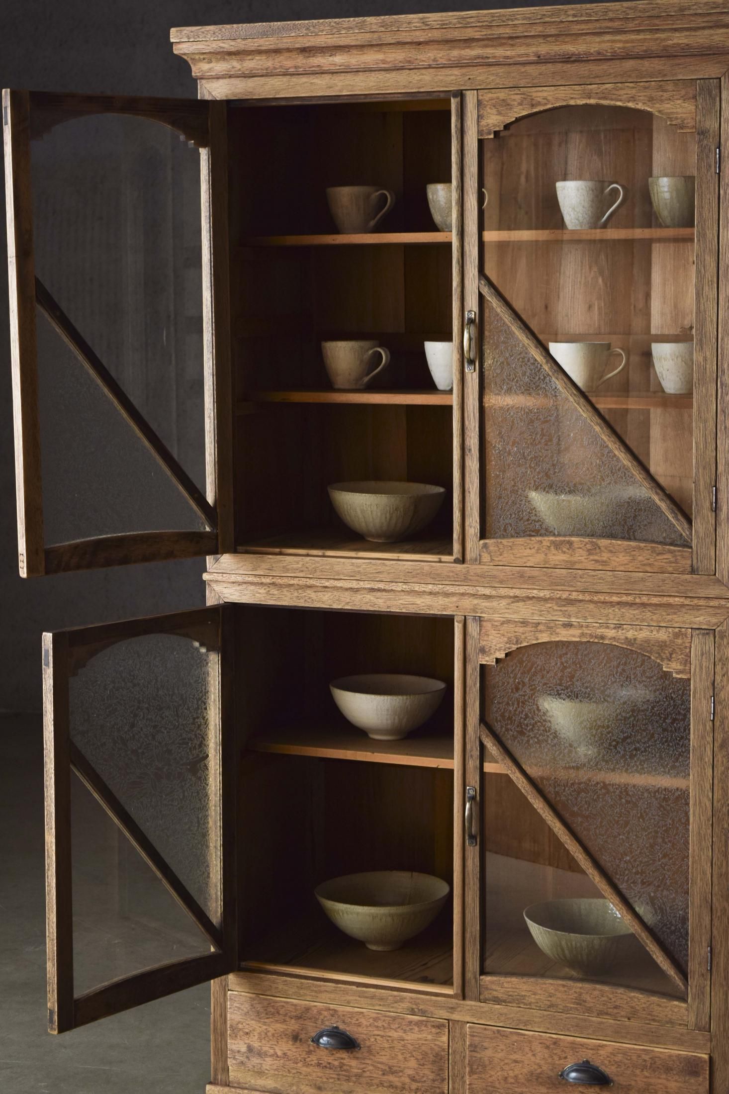 装飾と造りの美しい2段の食器棚。
