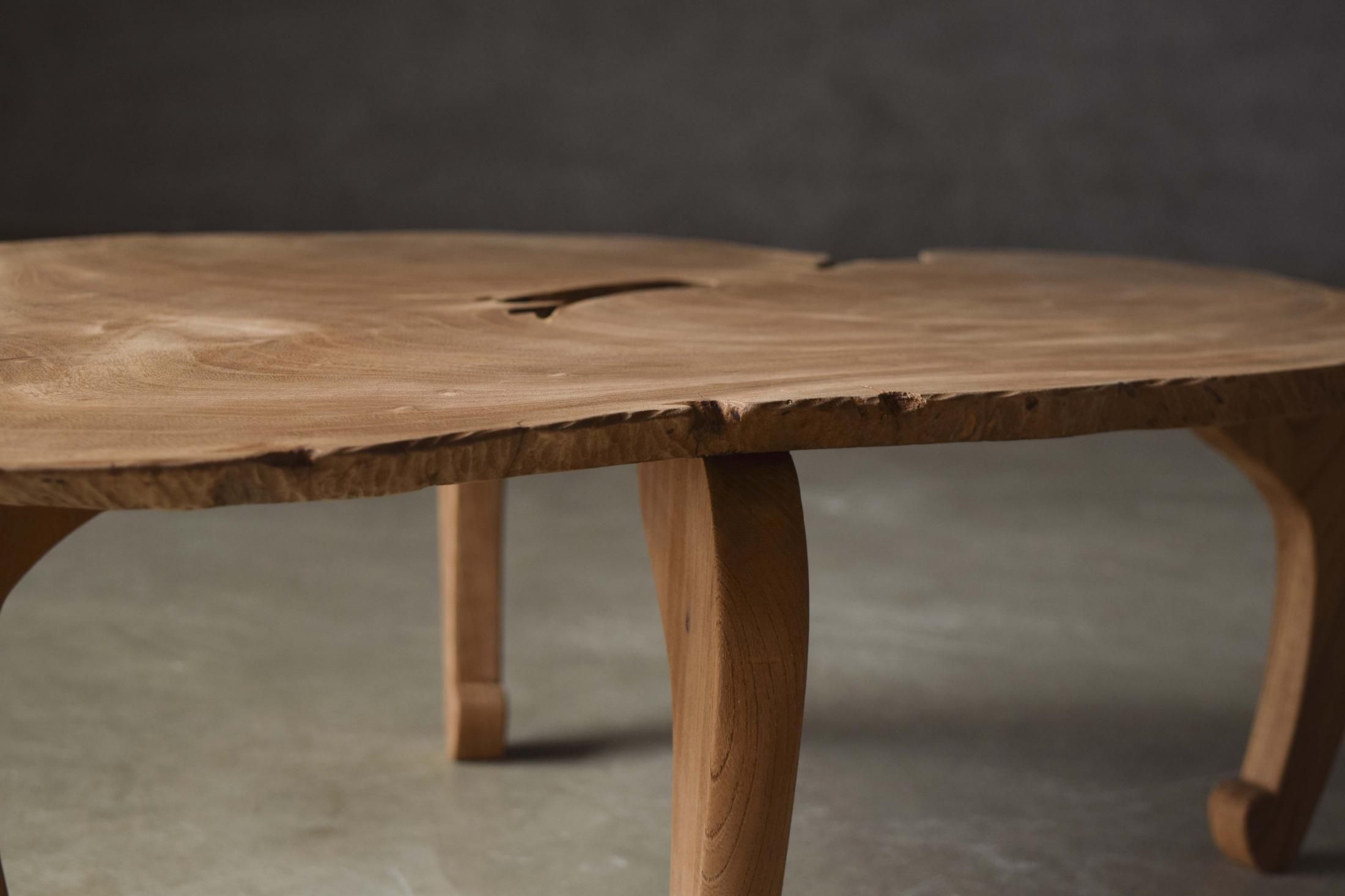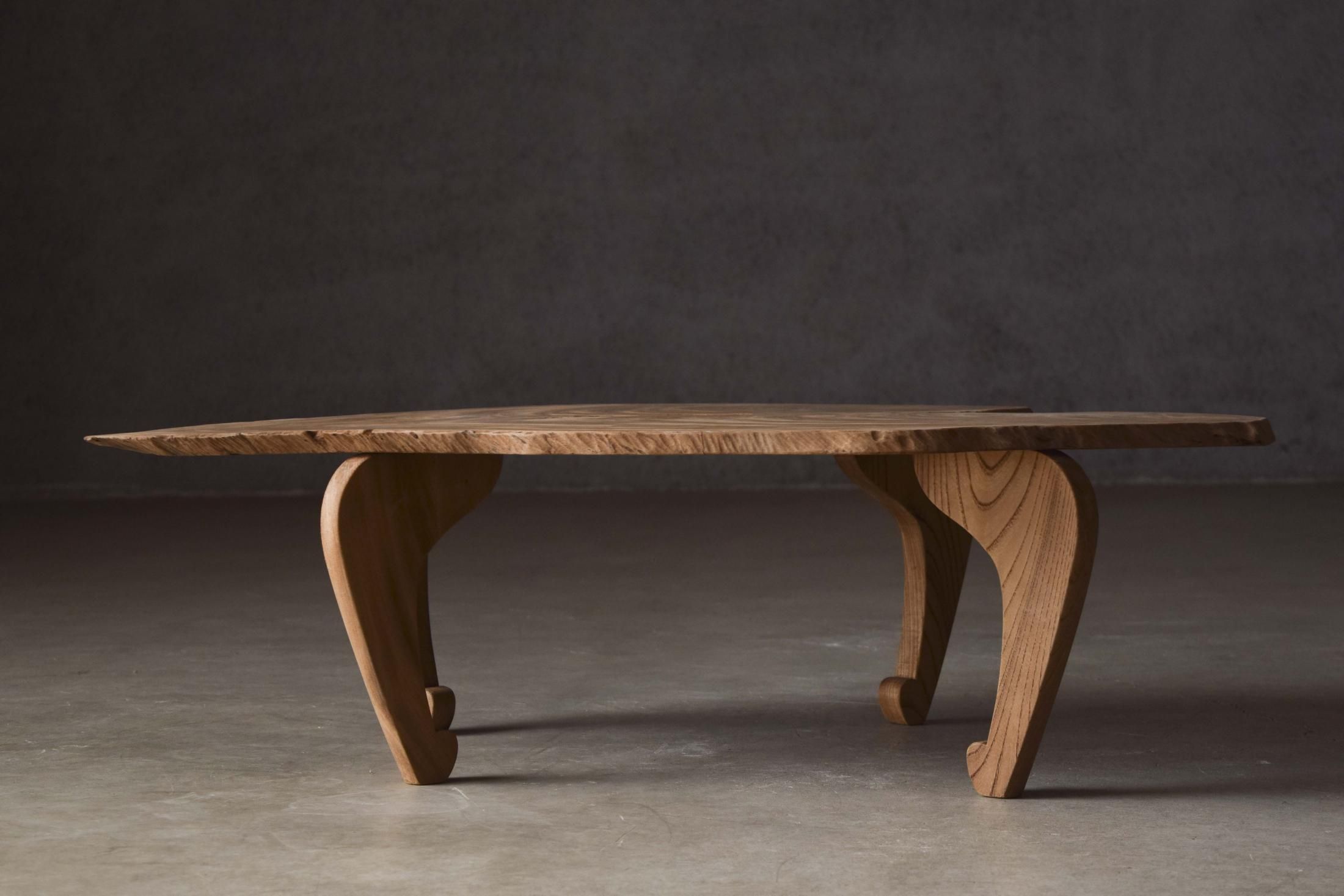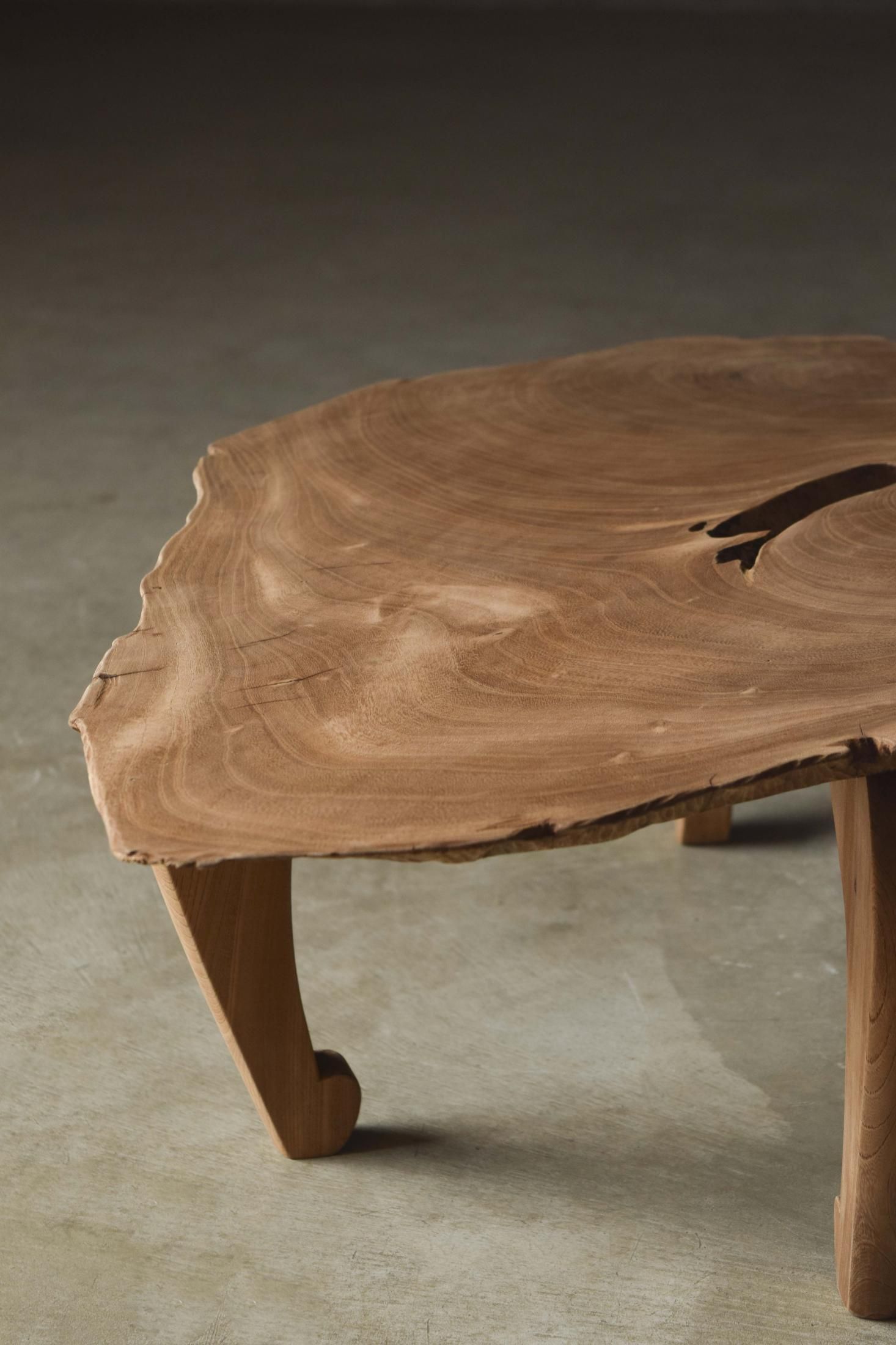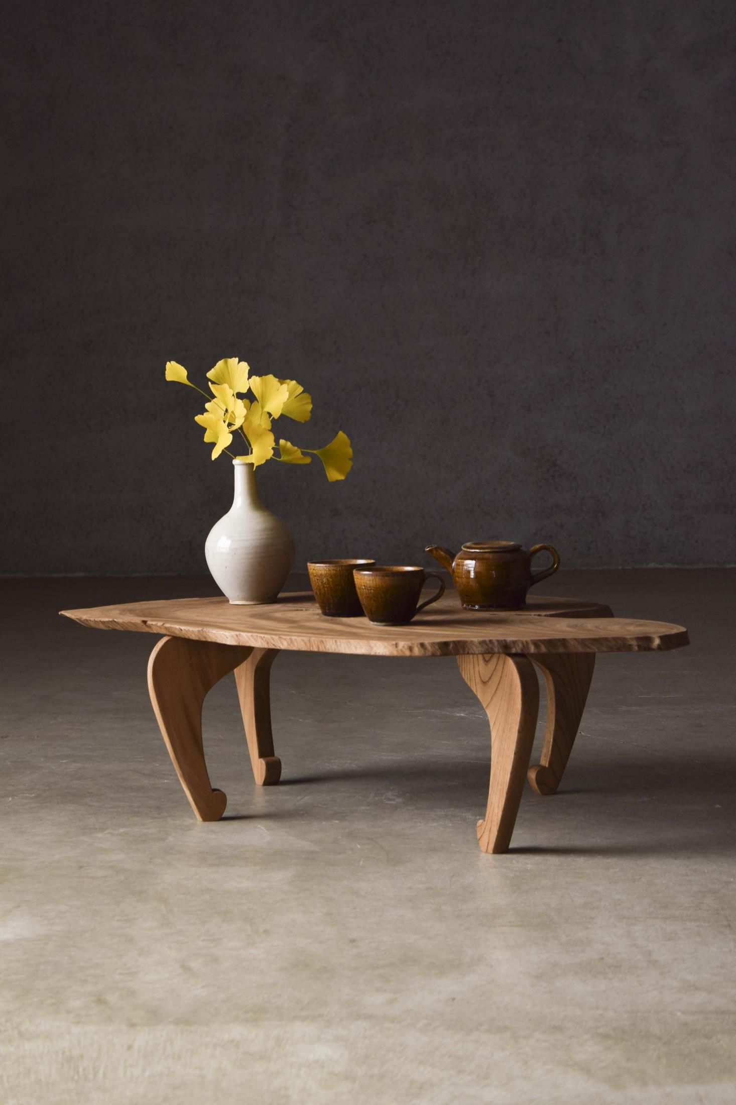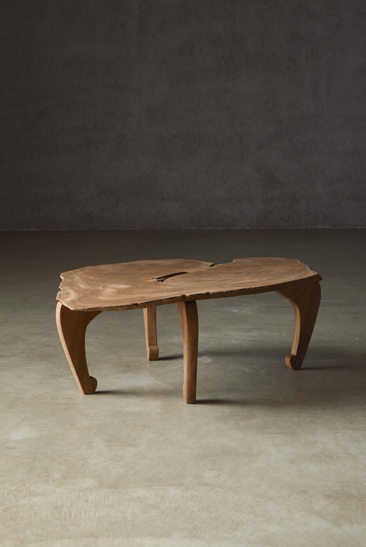 自然の造形を生かした欅の展示台。