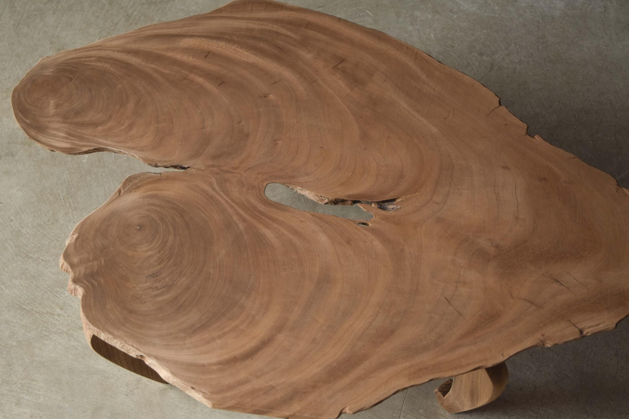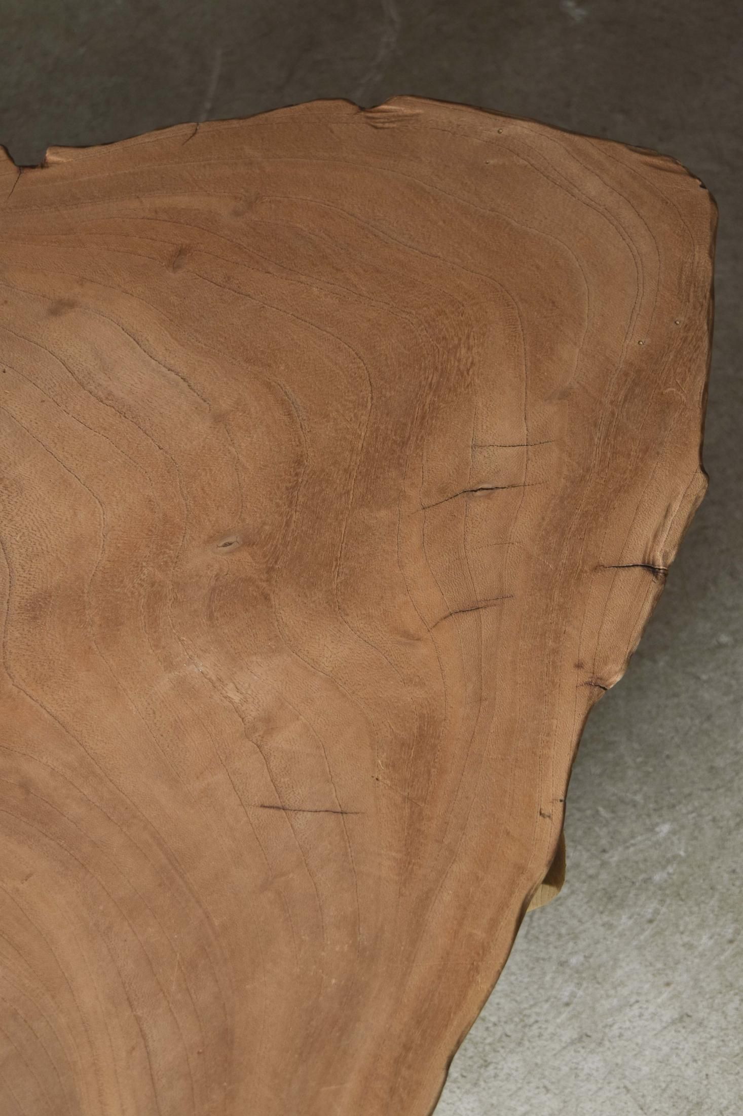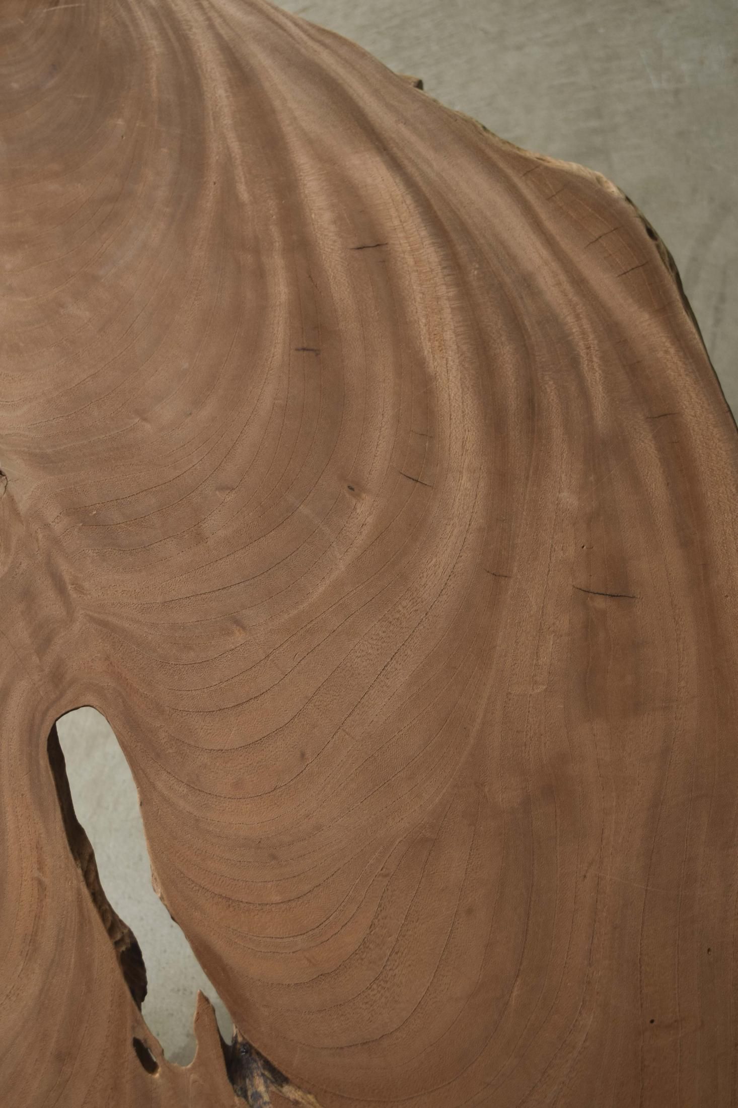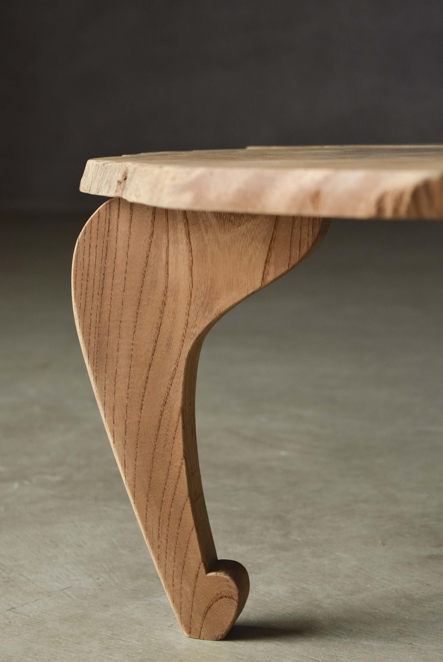 自然の造形を生かした欅の展示台。