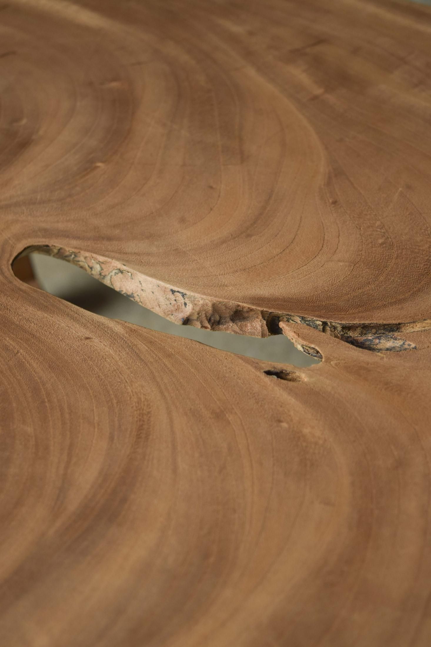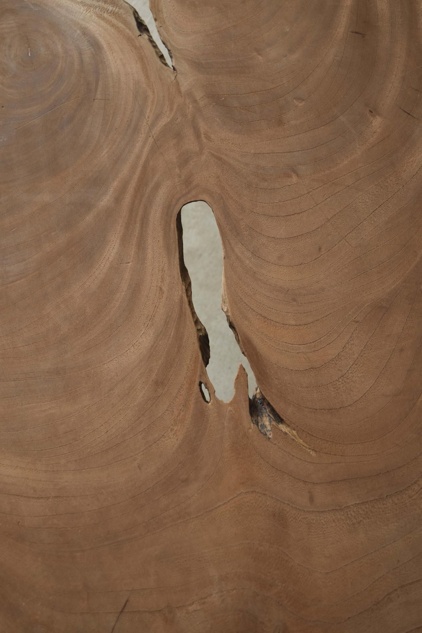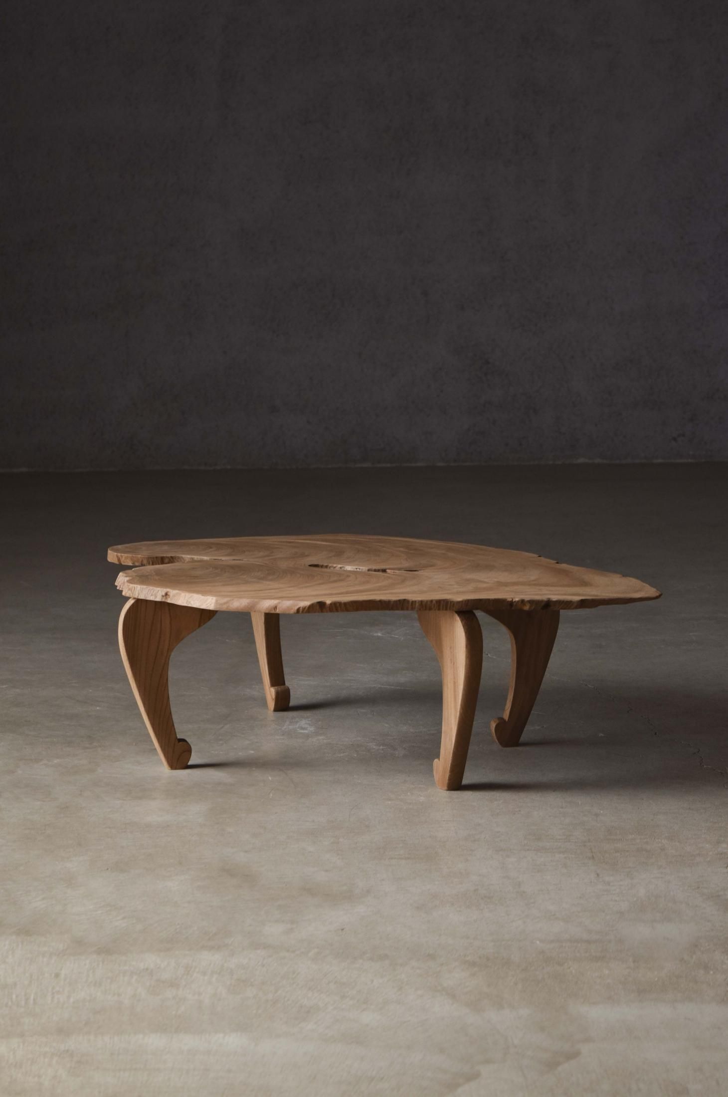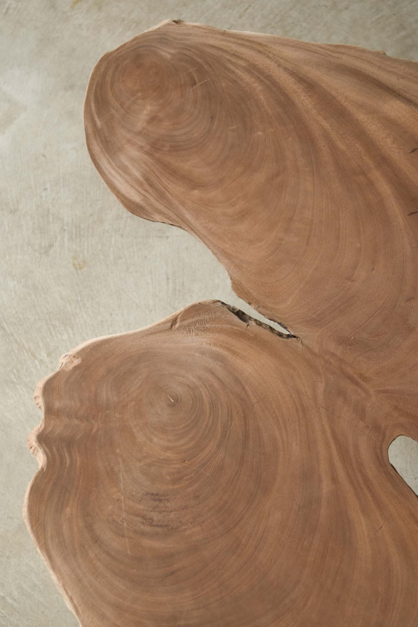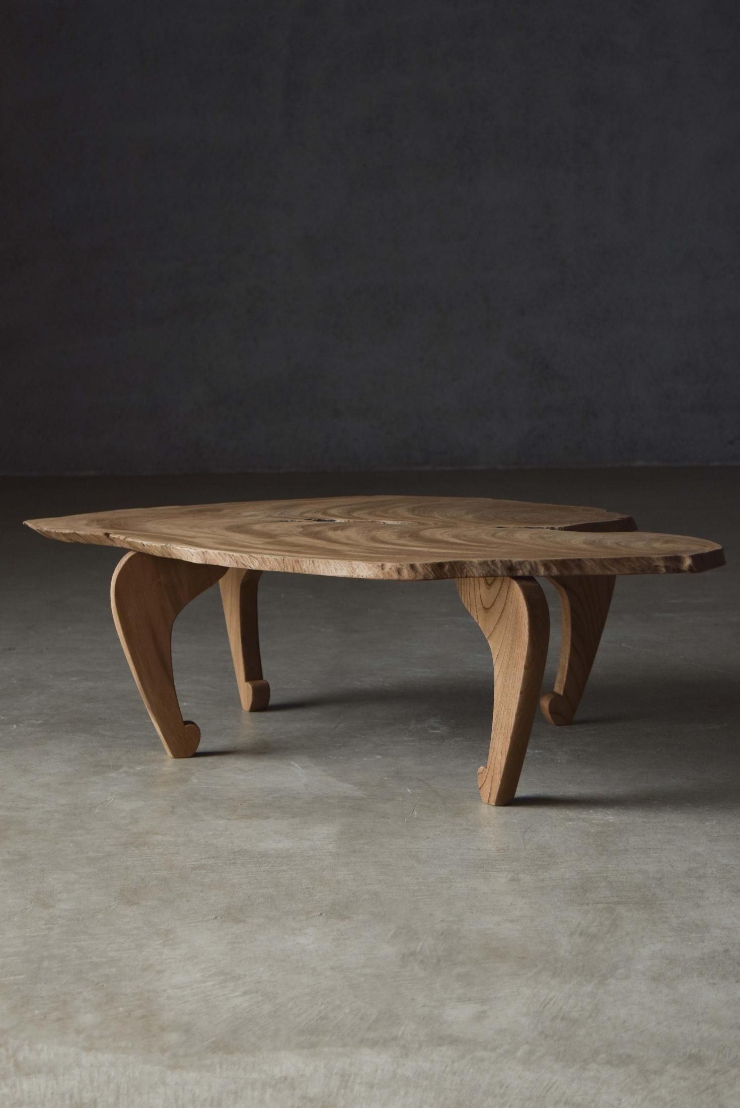 自然の造形を生かした欅の展示台。